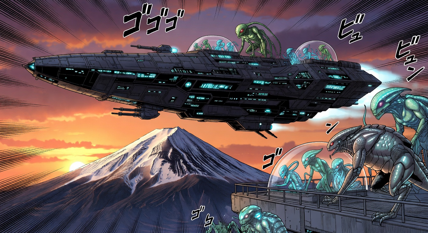 富士山と宇宙船の夕暮れ
